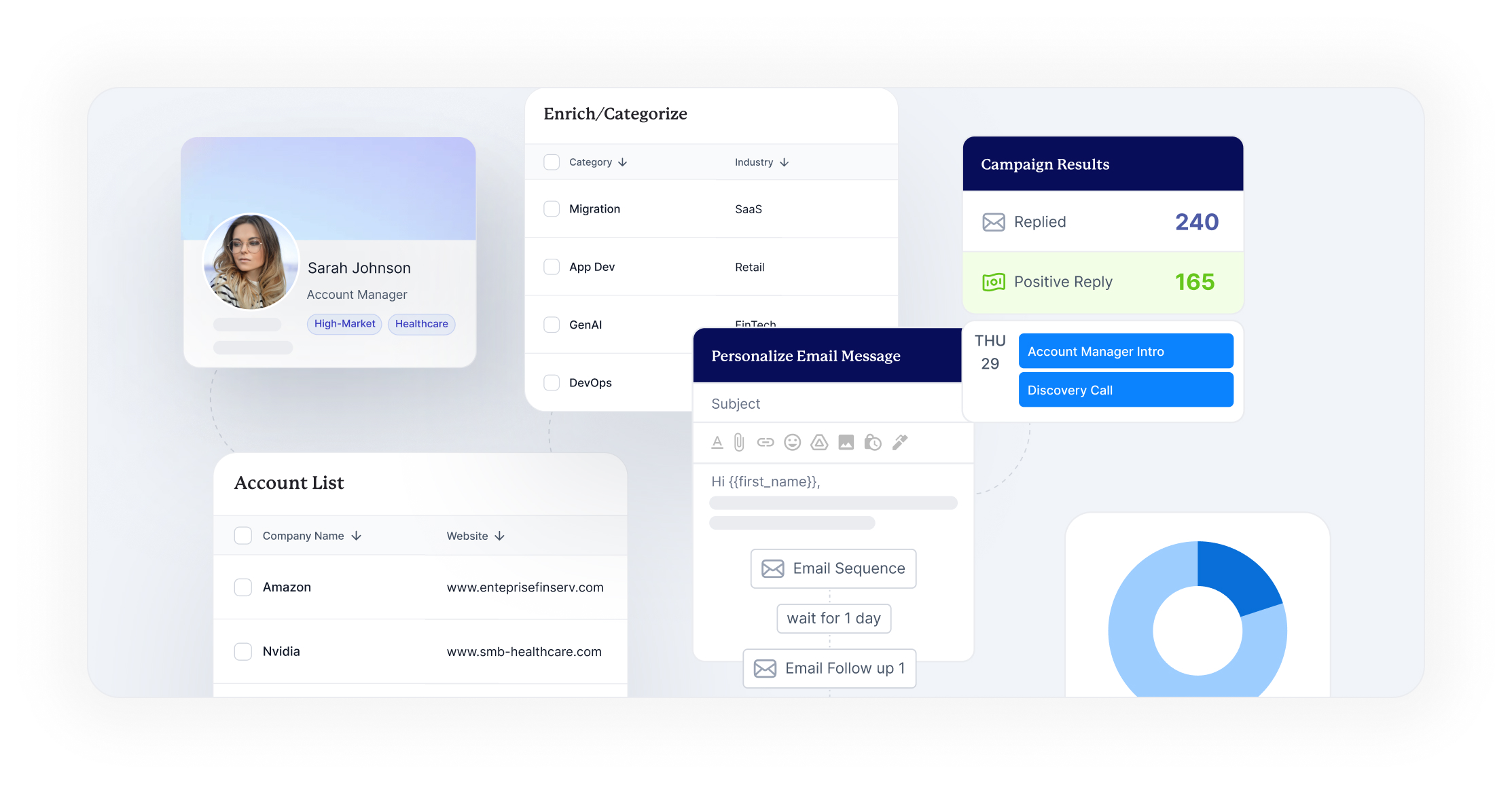 Rapidly triage new books of business: enrich, surface high-value targets, and launch day-one campaigns that create momentum with your AWS Reps.